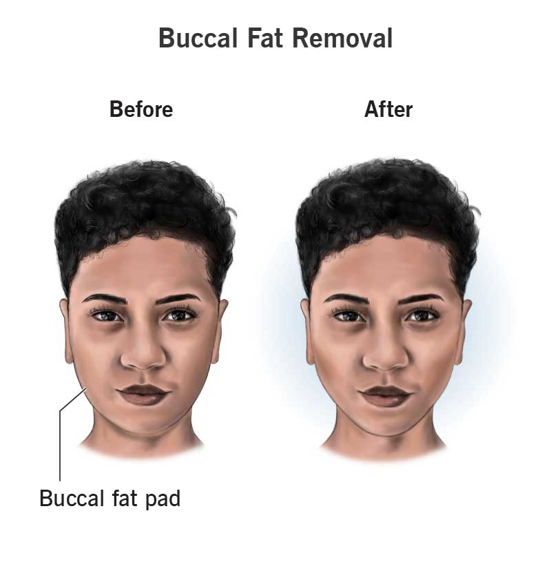 در افرادی که صورت گردی دارند یا دچار اضافه وزن هستند؛ و از فرم چاق صورت خود راضی نمیباشند؛ جراحی برداشتن پدهای چربی گونه در داخل گونه ها یک روش عالی برای خلاص شدن از شر چربی های ناخواسته صورت است. تخلیه چربی بوکال بهترین روش برای رهایی از شر این چربی ها خواهد بود. این عمل جراحی نسبتاً سریع و ساده است که با بی حسی موضعی انجام می شود و جای زخم خارجی ندارد.
