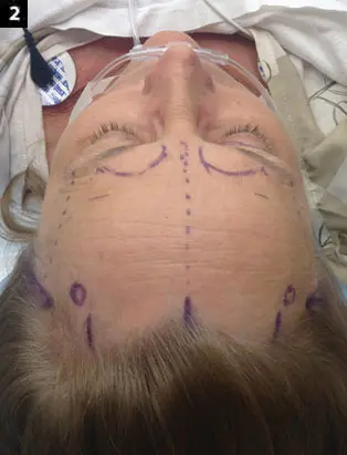 بعد از انجام محاسبات و ایجاد برشهای متعدد در نواحی خاص، بهوسیله یک ابزار مناسب، دسترسی به ناحیه پیشانی تا ابرو باز میشود. این باز شدن از داخل همان برشها انجام میشود و هیچ آسیب سطحی روی پوست ایجاد نمیگردد. بعد از این مرحله، پزشک با استفاده از دستگاه آندوسکوپ و دوربین آن، فضای داخلی ماهیچهها و بافت پیشانی و ابرو را مشاهده میکند.